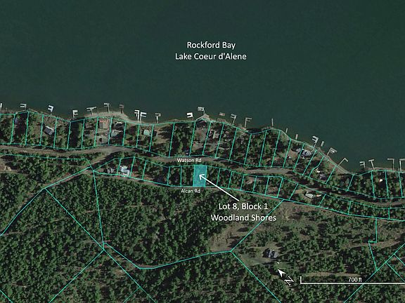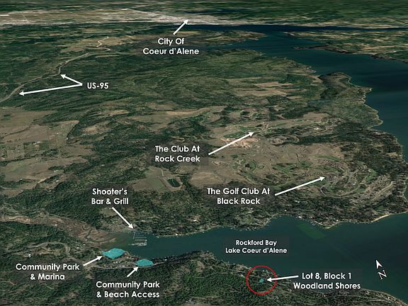Secondary Waterfront lot in Rockford Bay with Coeur d' Alene Lake view & boat slip at private marina. Located across the bay from Shooter's Bar & Grill. Community Park/Picnic area with Gazebo and recreation area with 300' of water frontage, boat launch and dock. Community Sewer, Water & Power are Available. Best price on the lake with boat dock. Deeded boat slip includedSeller financing available