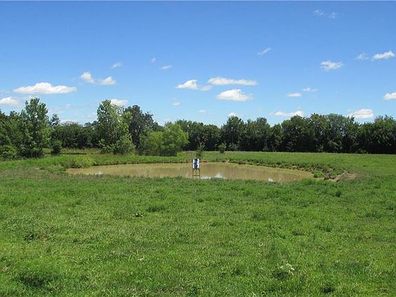 Let the kids go fishing, stocked pond, fishing dock. Another nice pond for the livestock. 40 acres on blacktop. Less than 5 miles to I-49. Fenced. Rural water is available. Also a root cellar on property with above ground access. Great building site for walk out basement, with a view of southern Cass county.