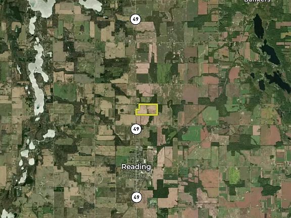 Don't miss out on your chance to own this outstanding piece of productive farmland with well drained soils on a paved road just 15 minutes north of the Ohio and Indiana state borders. This piece is also about 1 mile north of the quaint little town of Reading. This productive farmland has a NCCPI rating of 72.46, a low slope of 0-6%. The county average is 60 which places this rating much higher than county average. This is not only productive farmland but also a great piece of hunting ground. It is primarily open tillable but there is a nice patch of brushy timber consisting of Cherry, Oak, Maple and Walnuts on the south central part of the property. A shallow creek flows into the property here and continues north all the way up to Long Lake. The banks of the creek are only a a few inches at the south end of the property but gradually get deeper and at the north end of the property it is 4-5 feet deep which creates some great topography as it winds through the center of the field. Deer tracks and trails filter in and out of the field almost around the entire perimeter of the property. Call us today if you would like to know more. Do not drive in field as crops are planted. Property subject to 2023 crop lease.