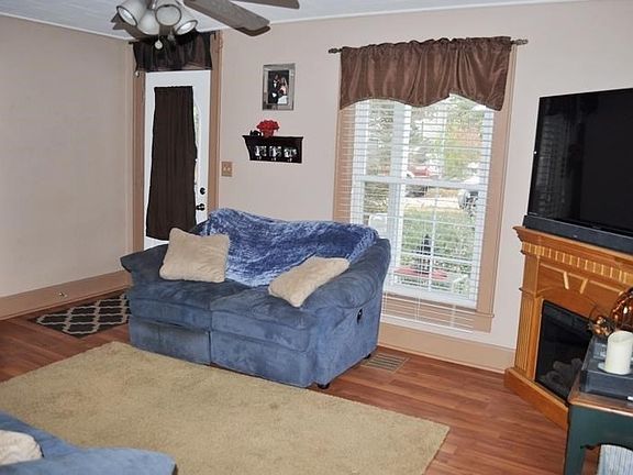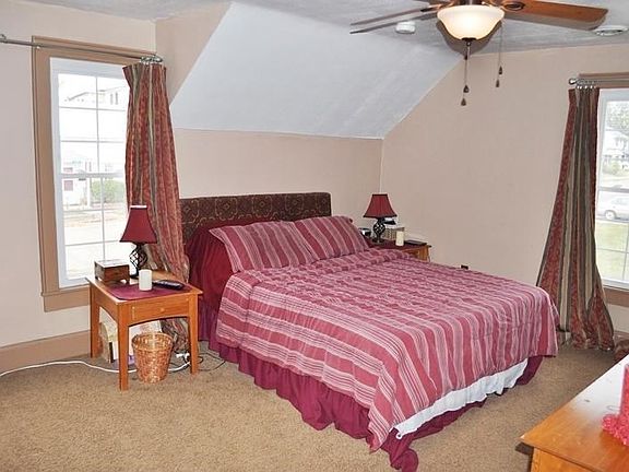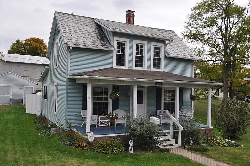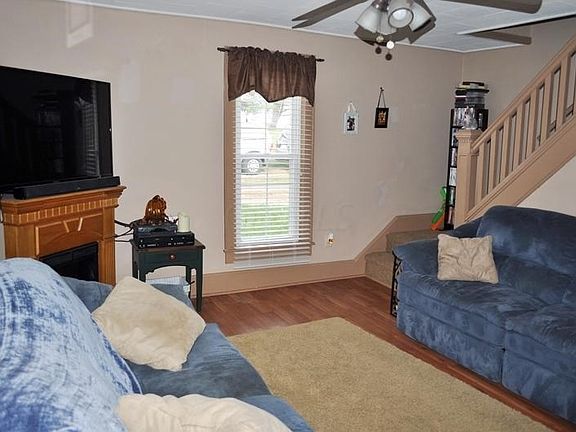 Adorable 2 story home w/full front porch! Upon entering you are greeted by the living room w/wood laminate floor & ceiling fan. The cozy kitchen offers oak cabinets, built-in hutch & leads to the formal dining room w/crown moulding & access to the rear yard, both having wood laminate floors. Seller's are currently using the 3rd bedroom as the 1st floor den with access to the 1/2 bath. Upstairs you will find 2 large bedrooms & the full bath. Enjoy the fenced in rear yard & deck. 2 car detached garage & so much more! Welcome Home!