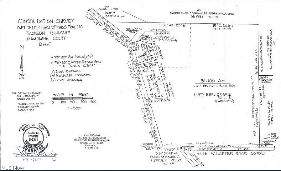31.1 Ac on the north east corner of the intersection of S Lipkey Rd and Shaffer Rd., There are two outbuildings on the property in an unknown condition. Must be sold simultaneously with 40 Ac parcel on West side of the road. Jackson Milton LSD, survey recently competed. Call Angela for details.