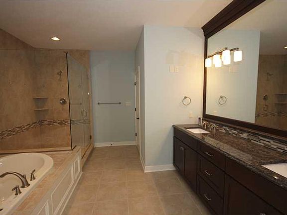 Madia Homes Single Family Model in The Meadows. All the maintenance free perks of a carriage home but with no wall to share. Brick and stone exterior, hardwood, granite countertops, and stainless steel appliances, 2 story great room, finished walkout basement, 1st floor master, laundry, and garage