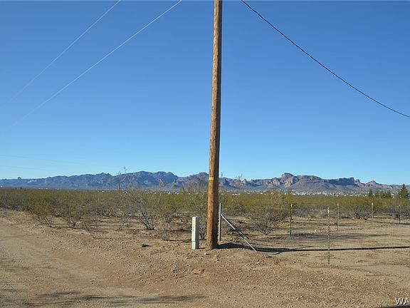 Incredible corner lot with a view! Flat land where you could build a home, or install a factory built home. Electricity on the property and water at the road that would need to be tied in. Great views of the Hualapai and Black Mountains.