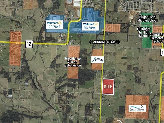 50.04 acres located between S Morning Star Rd and Gaston Rd. Two ponds are located on the property. 1,651 ft of frontage on S Morning Star and 1,653 ft frontage on Gaston Rd. Land near new Aurora & Scissortail Subdivisions. Development would require public road improvements on S Morning Star. Currently in Benton County. Access to Bentonville utilities require voluntary annexation.