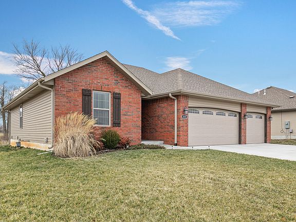 Immaculate 3 bedroom 2 bathroom home in Patriot Place subdivision! Offers open floor plan with living room with tray ceiling, kitchen has center island with bar seating, granite counters, custom knotty alder cabinets, walk-in pantry and dining area. Master bedroom with private bathroom featuring his & her vanity, walk-in shower and walk-in closet. Two additional bedrooms and a full bathroom. Patio out back and backs up to a field. Nice 3 car garage and is within walking distance to Logan Rogersville Primary school. Call to schedule your private showing today!