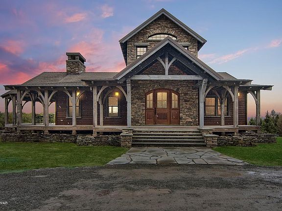 Amazing Custom Timber Frame & Blue Stone 44 Acre Luxury Mountain Estate! Step into this majestic Blue stone home with incredible cathedral ceilings, impressive stonework and custom woodwork throughout! Enjoy the Large open Chef's Kitchen and grand space for entertaining with million mile views from all windows and bedrooms of this custom property! Swim, fish and boat in the pristine spring fed large pond, hike, atv and snowmobile on miles of trails and pick your own Christmas Trees right on your own property! Awesome lower level for entertaining, custom master suite with majestic balcony and views! This is a truly one of kind, intriguing and amazing property which makes you feel that you are as close to heaven as you can get!