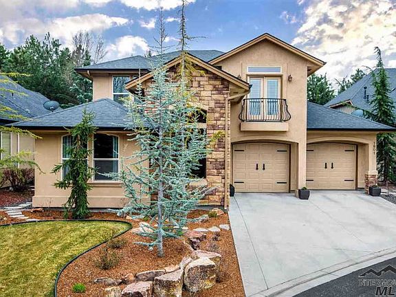 Poised in the private gated community in Two Rivers. Main level features hardwood, spacious great room, formal dining, den & master. Vaulted ceilings in kitchen & an abundance of cabinet space. Gorgeous master w reading nook leading to the back patio. Upstairs there's a loft, two beds & Juliet balcony. Covered patio w/fireplace surrounded by mature landscaping. Luxury living w/community pool, tennis & basketball courts & club house. Minutes from downtown Eagle & walking paths leading you to the greenbelt!!