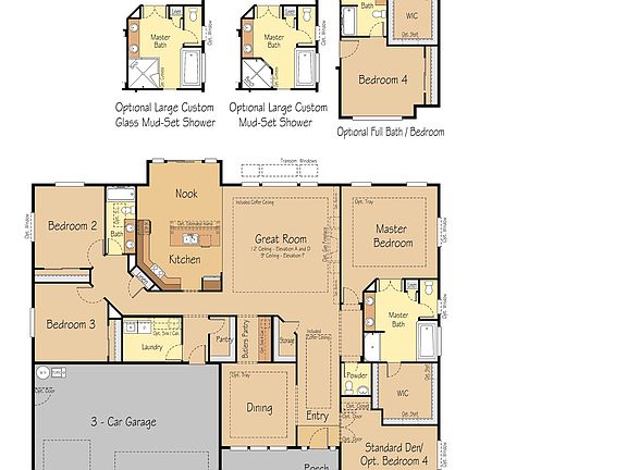 Single level-3-4 Bed, 2.5-3 bth and 3 car garage. Home plan includes formal dining, den, fireplace, gourmet kitchen, Smart Home technology. Still time for buyer to select all options with one of our professional designers. Pictures are similar not actual. Call for an appointment to view similar models.