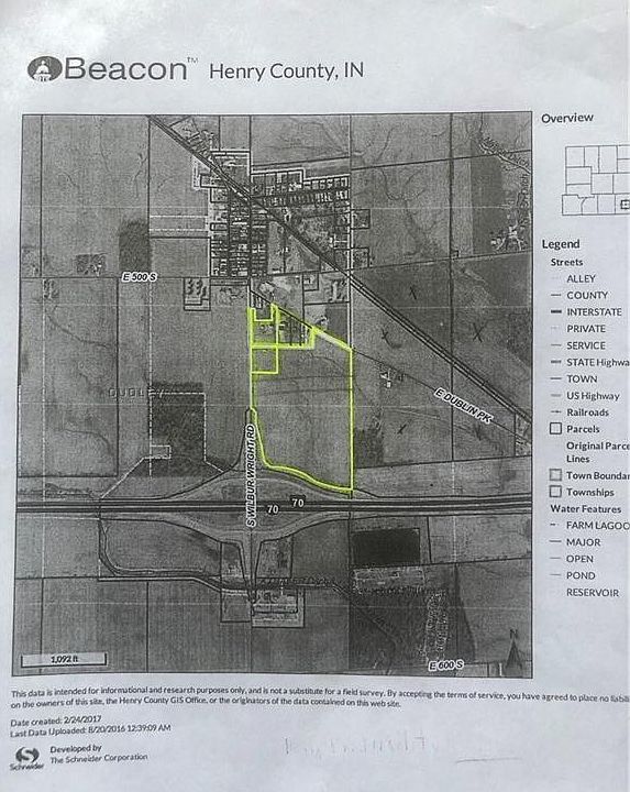 This Ideal acreage located at the NE corner of I-70 and Exit 131 (Wilbur Wright Rd) is ideally suited for a Truckstop or Travel Plaza or other Travelers' needs destination. Signage can be along I-70 and is about 170 feet long. Then there is about 2880 feet of frontage on Wilbur Wright Rd when you turn north off the Interstate. Wonderful opportunity to build and grow. Zoning for the property is a planned set of HB-1 HB-2, R-3, and R-1 to facilitate a community-like atmosphere for a positive influence on the surrounding properties. Once there was an opportunity for a RR spur from the Norfolk Southern Railway. If interested, we can check again.