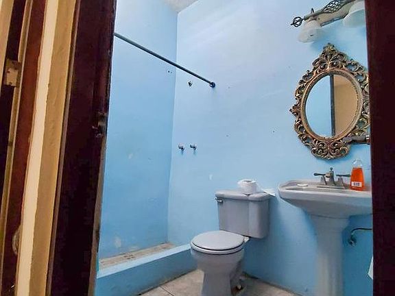Corner residence with three bedrooms, a bathroom, living room, kitchen and marquee dining room. Some repairs will be necessary..