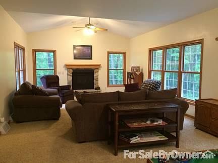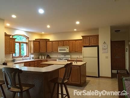 2 story house w/ 4 bedrooms and 2.5 bathrooms on 8+ acres. Prime location on Loreto Ridge north of Spring Green surrounded by mature trees. House is set away from the road and has a paved circle driveway - lots of privacy. 4000 sq. ft. / 3000 above ground - plenty of room for the family. A large kitchen is a cook's dream with lots of storage and counter space. 3 car garage for the toys. A large deck to enjoy the surroundings and listen to the birds. Lots of windows all around the house. All bedrooms are located on second floor. Dining room, living room, laundry room, extra large family rooms - main level and downstairs, and 2 fireplaces. Outdoor kids playset included. Additional property info: http://www.forsalebyowner.com/listing/4-bed-Single-Family-home-for-sale-by-owner-S10207-County-Road-G-53588/24032370?provider_id=28079