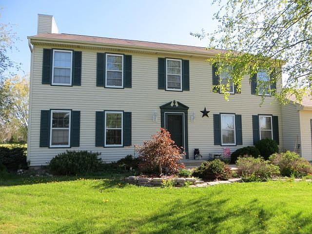 4 BD/2.5 BA maintenance free, 1995 built colonial situated on 3+ acres. Huge pole barn with attached garage with water, electricity (heavy duty hoist negotiable).Home features great room with new wood floors, NFP w/ high efficient wood stove, Great room opens to a large eat-in kitchen. FDR with newer hardwood floors. First floor laundry room. 4 good size bedrooms on upper level, all with walk-in closets. Home features new furnace and central air.power flush toilets, some newer carpet and is move-in ready.