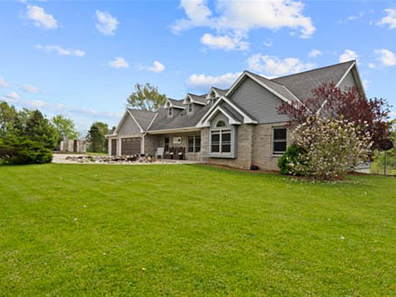 Spectacular, secluded home on almost 6 acres on the edge of a 400 acre nature preserve. Breathtaking views all around! Features include open floor plan, vaulted ceilings, lovely, bright additional suite, floor to ceiling natural stone fireplace and sunshine throughout! Minutes from town, Kettle Moraine hiking, horse trails, ATV trails and sports center. Explore the possibilities!