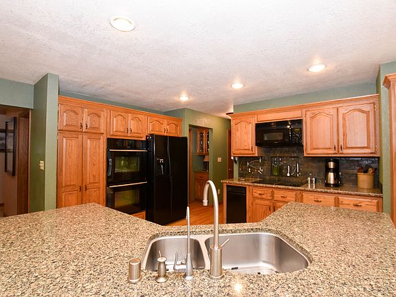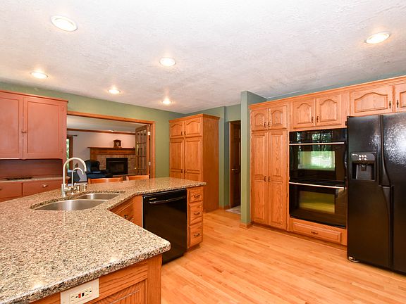 The gravel road leads you home. This peaceful and private 5.46 acre setting is a sure way to unwind and escape the city noise! Outstanding 4 bedroom, 3.5 bathroom Colonial offers more than 3300 square feet of living space and has been wonderfully updated. An abundance of raised panel cabinetry in the eat-in kitchen complete with quartz countertops, tile backsplash, Jenn Air appliances, hardwood flooring and breakfast bar island. The newer gas fireplace with brick surround is the focal point of the large and inviting living room. French doors lead to your private home office space. Main floor laundry. Three well-appointed bedrooms upstairs including the oversized master bedroom suite complete with walk-in closet, stunning remodeled tile bathroom, quartz countertop and double-sink vanity. The amazing finished lower level has it all - wet bar, theater/game room, guest bedroom and third full bath! Extra deep (33' x 32') 3-car attached garage is insulated and has Dura Panel steel walls plus a bonus 2.5 detached garage! Low maintenance exterior steel siding and composite deck ('14). Recent updates include newer roof ('11), vinyl windows ('11), furnace/central air ('11), Sunseta retractable awning ('14), lighting and appliances!