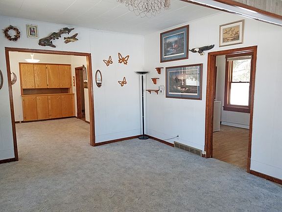 HOUSE-SHOP-SHED-POND...just the ticket for those families w/hobbies and/or "stuff". This older remodeled farmhouse with poured concrete foundation features 3BRs, 1BA with updated kitchen, gas furnace, C/A, metal roof, holding tanks in 2015, and more. Sitting pretty on 2.16 surveyed acres with a pond stocked w/fish, plenty of room to garden and storage galore in the garage attached to the home, older shop and newer shed w/upper level bonus area built in 2011. Conveniently located on hard surface road in