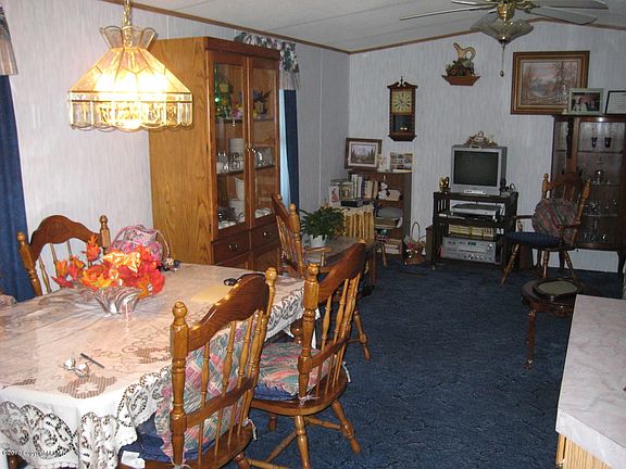 Mobile home featuring large eat-in kitchen with oak cabinets, master bath with garden tub, separate laundry room with pantry closet, central air and ceiling fans. Just move in to this spotless home. Original owner. Appliances are included and in working order.