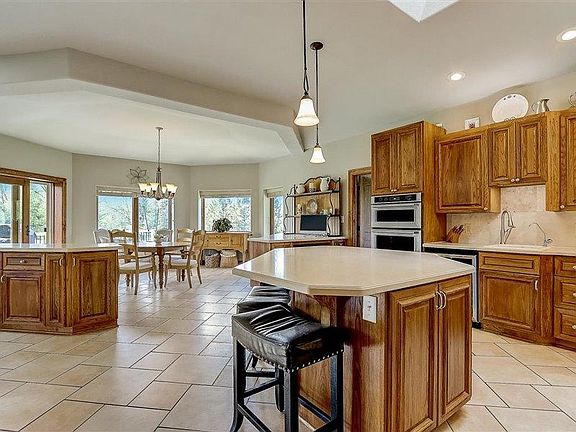 Energy Star Certified poured concrete construction Ranch home w/fully finished walk-out Lower Level on over 2 Acres! In-floor heating thru-out house (upper & lower floors). 9-10 foot ceilings, Spacious gourmet Kitchen/Dining Rm has 2 skylights, 2 sinks, large center island, Dining Room w/coved ceiling. Living Room w/walkout door to upper deck. Master Bedroom Suite has large WIC & luxurious Master Bath. Bedroom 2 on main with skylight. Solid Ash doors & Kohler fixtures. Lower Level has updated Rec Room (2020) w/wet bar & frig, gas fireplace, large built-in cabinet, walkout to Paver Patio. Large Bedroom 3 with Sauna, & Large Bedroom 4 or Office/Den/Craft Room. 33'x32' garage with lots of storage. Newly added landscaping, front and back. 2018 new Hardy Plank siding installed whole house.