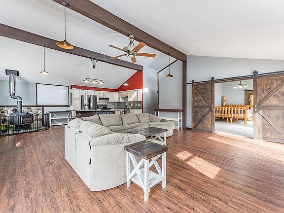 Location, location, location! Perfect getaway or full-time home, this is country living just minutes to town! Gorgeous 2 bedroom, 1 bath Ranch home has vaulted, beamed ceilings, new flooring, open-concept living/dining/kitchen w/breakfast bar & main level laundry. Great natural light from the double patio doors & abundance of windows, floods open & inviting living area. Tucked away on 2.81 acres between Baraboo/Wis Dells/Reedsburg with easy access to I90/94 & the Hwy 12 bypass. Big 2+ car, heated, garage has finished work area & partially finished upper level with outside entrance, that would be a great rec room/studio. Nature surrounds you with the big yard and patio, perfect for entertaining or just enjoying the peace & quiet. All offers to be presented 3/20/2022