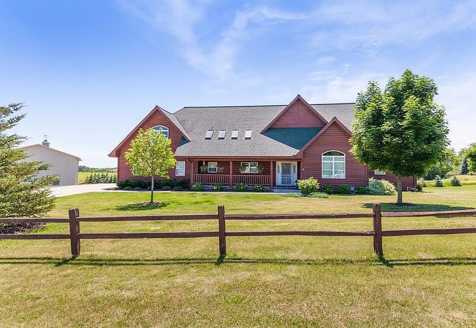 Country road, take me home to this serene, private setting. Newly updated, spacious log home backs up to 18 acres of farm land. Kitchen sparkles w/newer SS appliances, granite CT, farm-style sink, WI pantry & heated tile floors. 2 story GR w/NFP, newer windows & wet bar. You'll be amazed by the size of the main floor MBR closet! Each BR has its own private bath. Car hobbyist will gawk over the additional 4 car garage w/ 20' ceilings, heated floors, push trolley & office. Recent updates include newer iron curtain, water softener & recently painted exterior. Relax on the picturesque front porch.