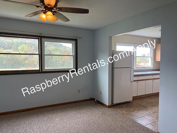Enjoy the private beauty of the countryside in this Swiss Chateaux! This apartment has its own entrance, two large bedrooms, a small office, two full bathrooms, laundry, and a large living room and kitchen, plus an extra mudroom and storage room. The rural valley has small sunny trails, a bonfire ring, and plenty of room for your own garden, too! Animals okay with approval and fee. Located just 10 minutes from Fountain City and 20 minutes from the Winona bridge, this beautiful chateaux is the perfect balance between the convenience of town and the serenity of the countryside. Landlord takes care of the snow plowing and lawn mowing. Water and trash service are included with rent, and tenants are responsible for electricity and heat. Tenant pays heat, electric and $25/month for trash; landlord pays water and does lawn and snow removal. Electric is prepaid at $150 a month, and heat averages $100 a month in winter. High speed fiber internet available.