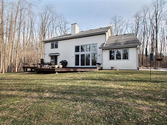 4 bedroom home tucked away on 3 wooded acres, a very private & peaceful setting with Scuppernong Creek running thru it. Nature and wildlife surround you with sprawling perennial gardens and close access to hiking and biking trails. Enjoy viewing nature from your great room wall of windows plus beautiful gas fireplace with wood mantel. Main Floor also includes 2-story foyer with open stair case, master bedroom suite, formal dining, large-eat-in kitchen, laundry & mudroom. 2nd floor catwalk leads you to 2 more generous-sized bedrooms plus a 4th bedroom or den. Large circle driveway. KM Schools!