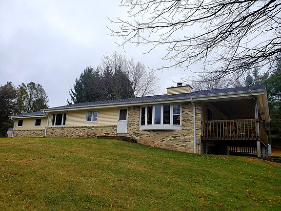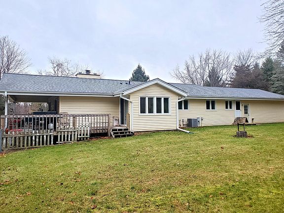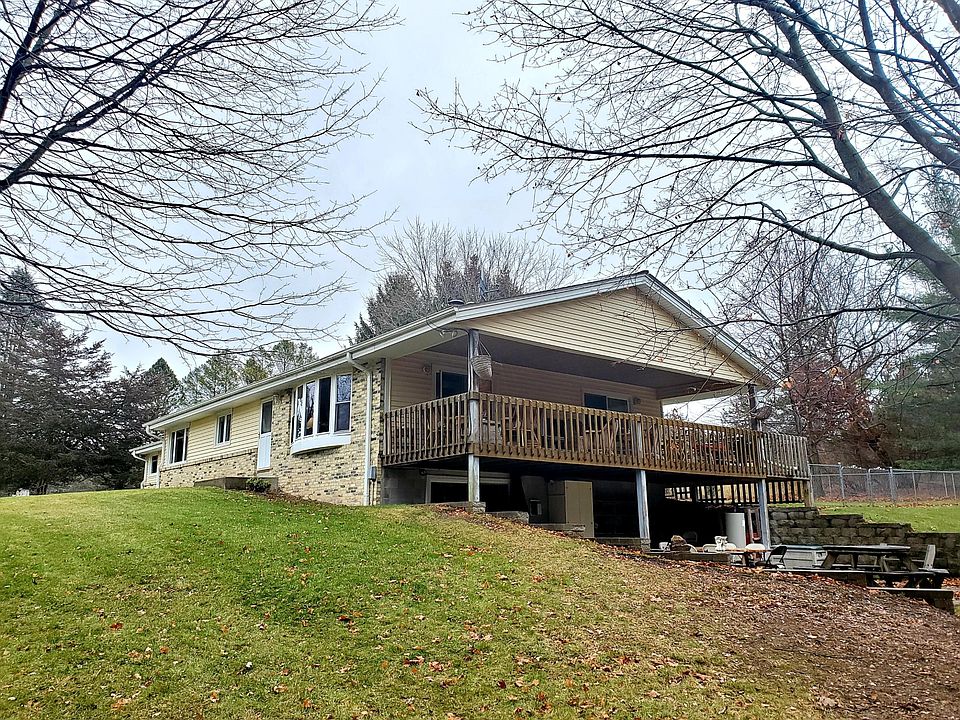 Spacious 3BR/2BA ranch with exposed/walkout lower level is nestled on this picture perfect 3 acre setting that is sure to please. The cozy living room with GFP & wet bar, along with the larger kitchen with center island & dining room make entertaining a breeze! Main floor laundry/mud room, master bedroom suite with built-in hot tub. The lower level features huge rec room with GFP, office & pantry/storage room - all with newer carpeting. Enjoy sipping your morning coffee while watching for various wildlife on the 10x31 covered deck overlooking the serene setting. Large patio & fenced yard means plenty of fresh air & outdoor enjoyment for everyone! Newer roof, siding, windows, furnace, A/C, water heater & insulation (2010). Newer oak hardwood flooring throughout main level.