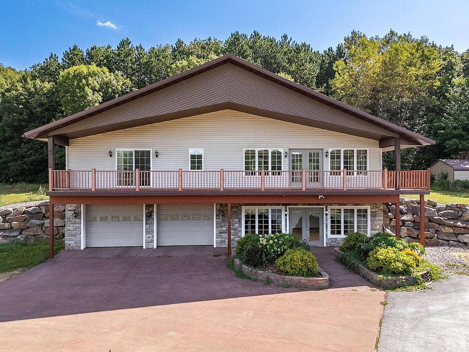 Located just outside of Baraboo, this beautiful 2-bedroom, 2.5-bath home is ready for its new owner. The open floor plan is centered around a striking vaulted wood plank ceiling, creating a warm, airy ambiance. Each room offers scenic views, and the large wrap-around deck provides a perfect outdoor space for relaxation and entertaining. The three-seasons porch offers a cozy spot to enjoy the outdoors. Set on a double lot totaling 4 acres, this property ensures privacy and plenty of space. A large pole shed and two additional carports offer abundant storage for equipment, vehicles, or recreational gear. The 2-car attached garage completes this inviting home, perfect for those who appreciate peaceful, spacious living with easy access to the Baraboo area.