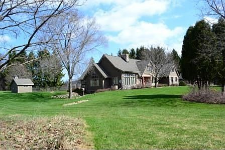 Truly amazing property nestled on 20 secluded acres abutting 30 acres of conservancy. The pleasures of privacy, nature, walking trails & wildlife right outside your back door. Private drive leads to incredible 2-story home with expansive windows throughout. Sunroom, cathedral Great Room & updated kitchen. Home has been meticulously maintained & offers many updates. Property has 2 ponds, patio, in ground pool, 3.5 car garage, detached garage with loft & finish lower level.