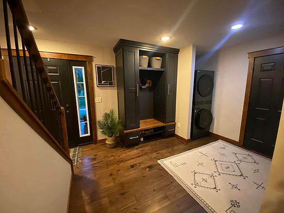 This exquisite 4-bed, 4-bath home offers breathtaking golf course views & has been meticulously updated. The main level was remodeled in 2019, & the upper level in 2020, featuring modern, stylish finishes. The kitchen, dining room, mudroom, & bathrooms boast custom cabinetry & quartz countertops. The master suite includes a luxurious walk-in shower. Enjoy the tranquility of the private deck & large yard. The finished walkout basement provides an exceptional space for relaxation & entertaining, complete with hot tub hookups on the patio. The attached, heated 3-car garage w/ sprayed insulation ensures year-round comfort. 10 x 12 double lofted detached storage shed (2022) offers ample storage. New roof (2022), furnace (2019), garage doors (2016), and appliances (2023). This home seamlessly combines modern amenities with stunning surroundings, making it the perfect place to live and entertain.