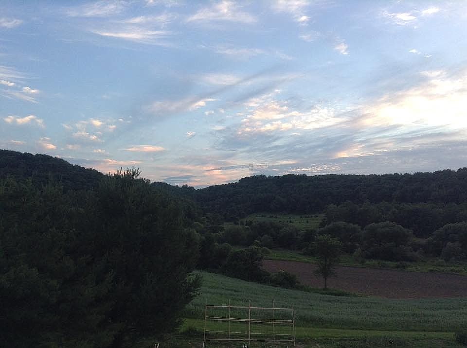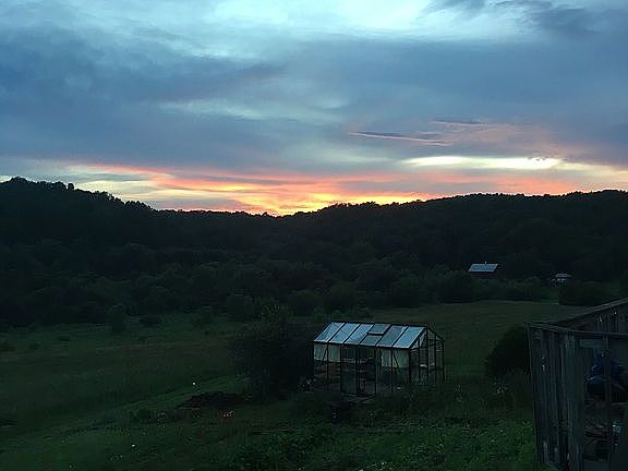Beautifully maintained two story home with plenty of room , ample storage and fabulous views. House sits on 40 acres, half pasture, half tillable, wooded hills out every window. Creek running through pasture. 5 bedrooms and a library upstairs share large full bath, master suite with large walk-in closet and full bath. Complet remodel in 2015 with lots of upgrades including brazilian chestnut hardwood floors, high efficiency and attractive wood stove in living room, and gourmet kitchen with quartz countertops; Amish made cabinets and stainless appliances. Also addition of main floor office space with exterior double doors as well as pebbles glass interior doors. New central ac in 2017 and new furnace 2018. New steel roof 2014. New driveway with added parking area and easy access sidewalk 2027. New garage door and opener 2019. New wraparound porch with roof 2019. 36x60' shed with pen for animals, and finished storage/processing room. 15x30’ chicken coop with extra large run. 100x72’ garden with central fountain, mulched paths, watering system and Victorian glass greenhouse.