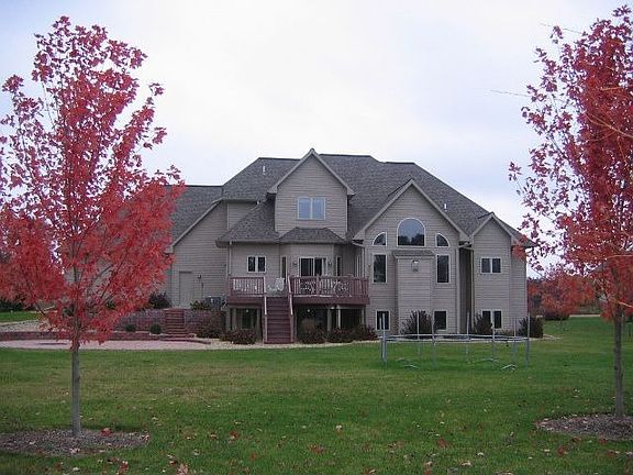 Over 4200 Sq.Ft. of immaculate living space located on 1.7 acres one of Baraboos finest locations. Main level features master bedroom suite w/h walkin closets, whirlpool tub for 2, walkin shower. Kitchen has solid surface counters, Cherry cabinets, stainlesss appliances and serves the dinette and formal dining rm. Great room w/ FP overlooks maintenance free deck and backyard. Upper level boasts 2 bedrooms and huge bonus room.