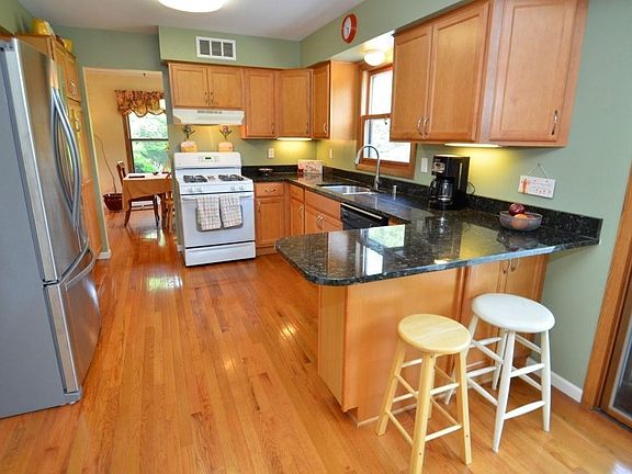 Beautiful move-in ready 4 bedroom, 2& a half bath house nestled on almost 4 acres. Sit on the huge deck off the kitchen and enjoy the beautiful private yard with mature trees, nature, enclosed garden, apple plum cherry trees. This house has attached garage and a shed with electric. The interior was freshly painted this spring. Kitchen updated with maple cabinets and granite countertops. Other updates include carpeting, front siding, fireplace, hardwood floors & front windows.