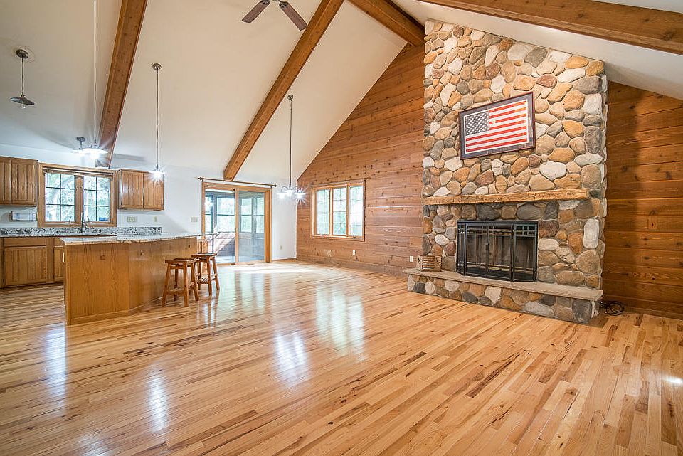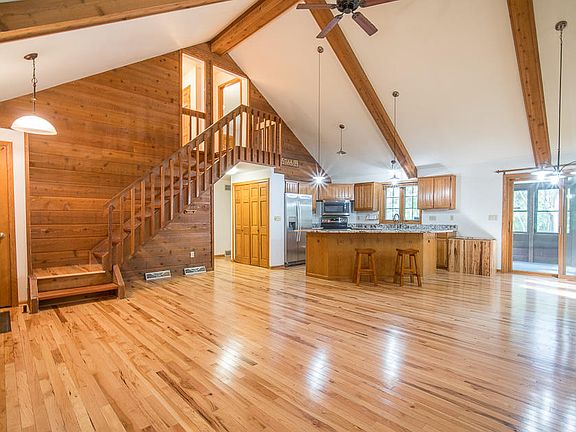 Amazing Densely Wooded 3 Acre Private Setting. Enjoy Tranquility and Nature all in Your Own Back Yard. Fantastic Rustic and Updated 3BR 2 Full Bath Home Has an Open Concept. Dramatic Vaulted Ceilings in the LR w Stone NFP and Patio Doors to Large Deck Overlooking the Park-Like Heavily Wooded Yard. Kitchen Features Hickory Wood Floors, Granite Counter Tops and SS Appliances. Main FL MBR w Private Updated MBA. Main FL Utility Room Too. Upstairs Loft and 2 BR's and Remodeled Full Bath. Lower Level has Epoxied Floor and Pool Table w Walk Out from Workshop. MUST SEE HURRY!!