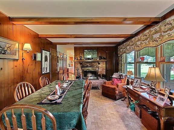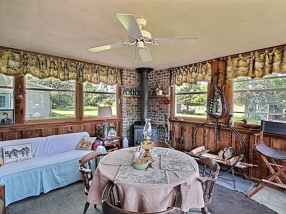 Peaceful country farm tucked into the rolling hills of the Kettle Moraine. Home features and indoor pool room and fantastic sun porch perfect to use year round with woodburning stove. Horse barn features concrete aisle, 6 stalls, wash stall & tack room plus living quarters attached with kitchen & full bath. 2 pastures have heated auto waterers. Additional barn w/5 stalls & tack room plus a workshop barn insulated and heated w/wood burner. Bring your horses and some TLC!
