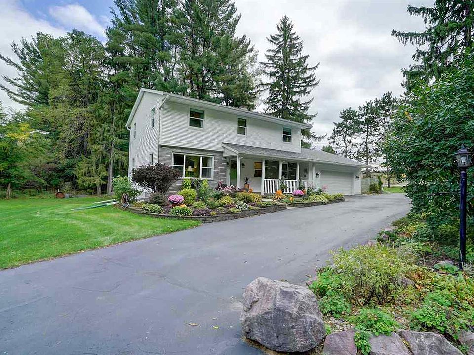 You may have driven by and admired this beautiful property for years wondering what it would be like on the inside. Now is your chance to know! This well maintained Colonial is located a minute from Baraboo but offers the enjoyment of country living. The main level has room for everyone to spread out with a living room, family room w/ gas fireplace & in-floor heat, formal dining room + a dinette, office & half bath. The efficient kitchen w/ large pantry makes cooking a breeze. Your new favorite hangout will be the screened porch with ceiling fan & canvas awnings to block to wind & rain. All 4 bdrms are together on 2nd floor with private master bath and shared bath. Outdoors, enjoy almost an acre yard full of perennial gardens & private patio made with bricks from Baraboo?s streets of past.