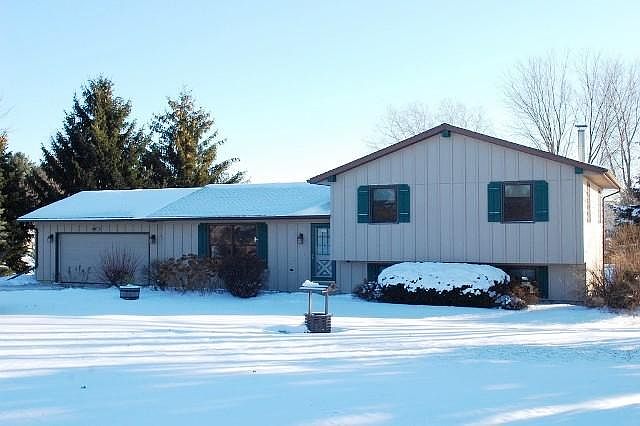 Enjoy quiet town living on a beautiful park-like 1 acre lot yet still be close to city conveniences. This well cared for home has much to offer. Main floor has spacious Kit & Dinette w/ snack bar pantry & new flooring. Vaulted ceiling in LR is open to Kit. Walk-out LL has a cozy Family Rm w/ wood burning stove & newer Pella doors leading to patio. Other special features include new carpet in LR & BDs newer windows exterior recently painted & deck stained. Low town taxes a plus! Truly a wonderful home!