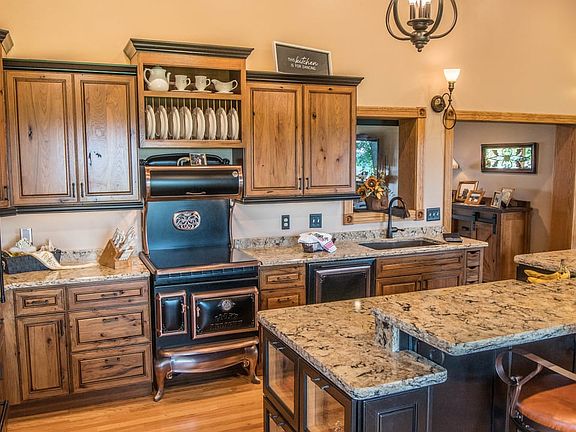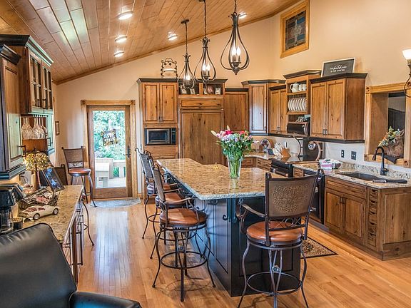 The 4834 square foot 4 bed/3 bath home has been beautifully remodeled and features Cambria countertops, hickory cabinets, oak flooring, 4 gas fireplaces, new carpet and paint in 2020, custom stained glass, Metro Stone coated 50 year steel shingles, clog free gutter system installed in 2013, second floor laundry near all bedrooms, living room, sunken family room, office, workout room, attached 2 car garage, multilevel decks with permadeck material and outdoor fireplace. The huge deck is a perfect place to unwind after a long day with views overlooking the 2 ponds below the home and the pasture that surrounds you.