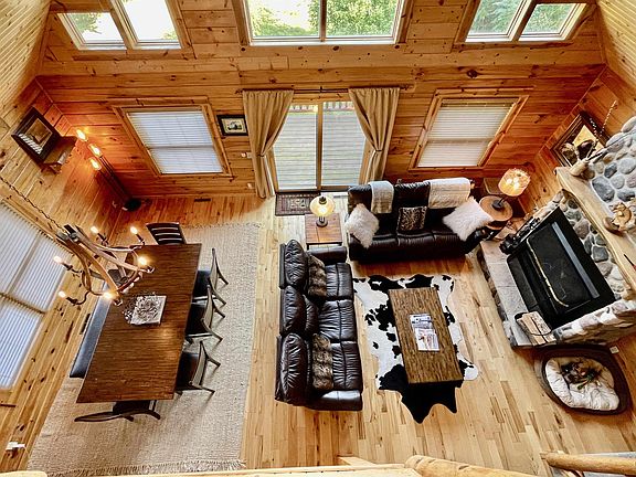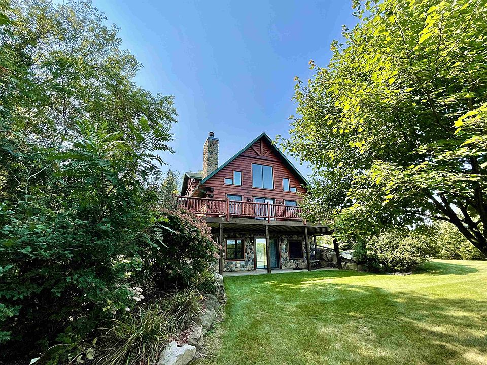 Enjoy splendid bluff views from your living room, family room and 20x20 private, wrap around deck in this fully furnished log home. Immaculately groomed, this home features Amish crafted hickory cabinets, Beechwood flooring, Silestone countertops, two stone fireplaces, walk in pantry, and 20x25 main bedroom suite with twin balconies, garden tub and walk-in closet. The lower level boasts two bedrooms and beautiful walk out family room complete with stone fireplace. Many attractions along the paved walking/bike path include a golf course, winery, brew house, along with swimming, kayaking, sailing, or miles of hiking in the State Park!