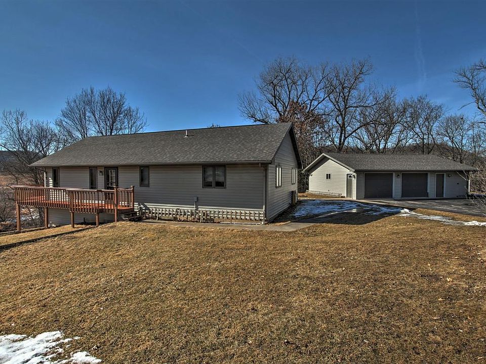 Beautiful home perched above the West Branch of the Kickapoo River. Property has lots of river frontage and views from all directions are amazing. Home is a Prow Ranch with open concept interior design. Large Great Room, Kitchen with solid handcrafted oak cabinets and solid surface tops. Sunny wrap-around deck to enjoy watching wildlife on and around the river. Family room in walk-out lower level with gas fireplace. 4.4 acres with nicely landscaped lawn with Raspberries, Blueberries, Asparagus and Apple trees. 2 car detached heated garage with shop.