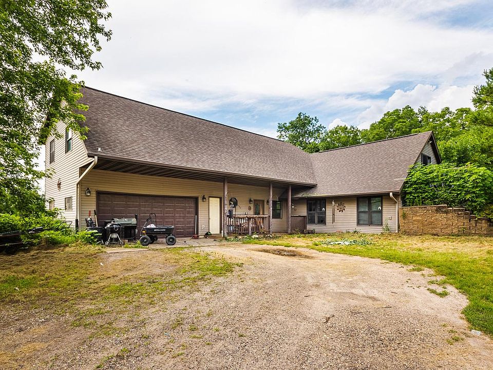 If you've been looking for a hobby farm in the Driftless region look no further!! Bordering the Bad Axe River this 18.78 acre property is currently set up for horses with roughly 5.5 acres of pasture and a metal building. Don't miss the solar panels which are only 1 year old- energy savings!!!If you've got a big family or often host guests this house has PLENTY or room for everyone! Walking in you'll be impressed with the wood vaulted ceiling and spacious living room. Open concept to the dining area and kitchen. One wing of the home has 2 bedrooms, a full bath and the loft office/bedroom w/ it's own private bath. The other wing offers 4 more bedrooms plus a non-conforming bedroom/office/storage. 30 minutes from the south side of La Crosse and 20 minutes to Viroqua.