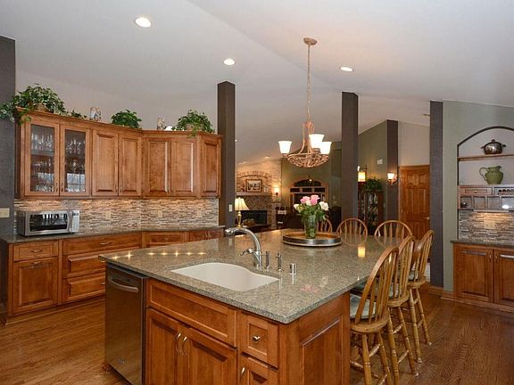 Stunning ranch home is sure to amaze you! This open concept split 4 bed 3 bath home has it all. Offering a huge kitchen w/ updated counters, hard wood floors, birch cabinets & custom brick decor. The large living room offers a f/p, floor to ceiling windows & vaulted ceiling. The sprawling bedrooms offer large closets and the master suite has a beautiful suite w/ tub, shower and walk-in closets. An added detached garage w/ room for a total of 7 cars & sun room behind garage. All this on 3.4 acres.