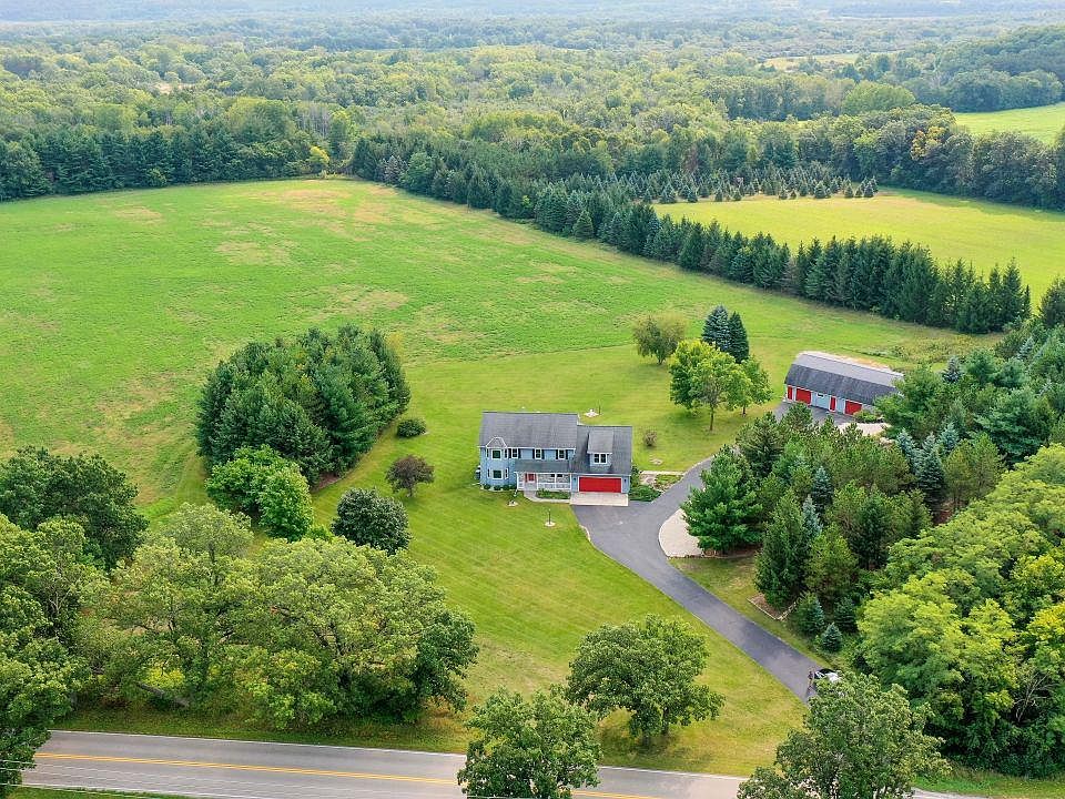 Country bliss! Ideal property combines this 4 plus bedroom, 2.5 bath home, a 56 x 32 outbuilding on a concrete slab, on over 14 acres. Original owners dream to make this infinitely useful. Kitchen-dinette opens to family room for great entertaining with patio doors to oversized deck overlooking entire property. Separate dining, main floor laundry, four season room with water supply for hot tub, two other main floor rooms. Huge bonus area on upper level. Who wouldn't want to spend time in the outbuilding any time of year?! Hookups galore, 3 overhead doors and 2 service doors. Help pay your mortgage possibly, rent field consisting of 10 acres and/or part of the outbuilding. Work from home would be a breeze, the possibilities are endless.