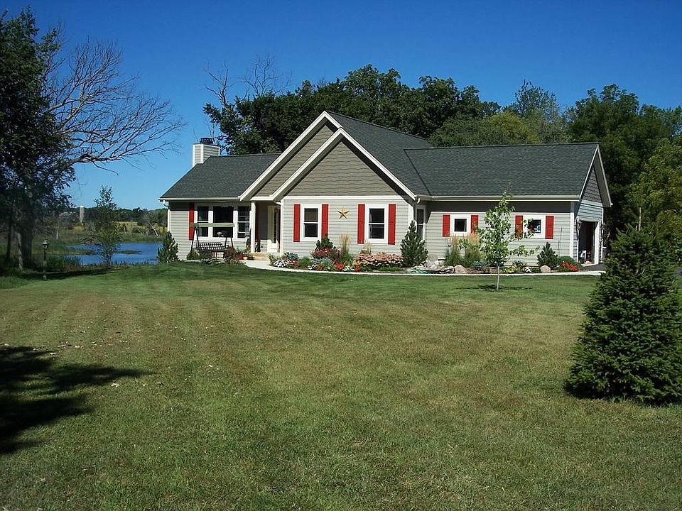 Outstanding home and setting on 3.48 acres bordering pond! 2 outbuildings including a 24x40 insulated building with concrete floor and 200 amp service. Beautifully designed home features cathedral ceiling great room with fireplace and walls of windows offering pond and nature views. Gorgeous kitchen has granite countertops and breakfast bar. Large master suite with private deck. Huge finished walkout lower level features large family room. Updated bathrooms. So much more to list. This home must be seen!