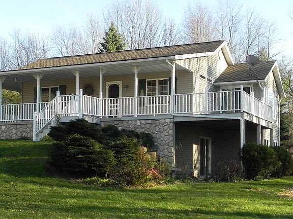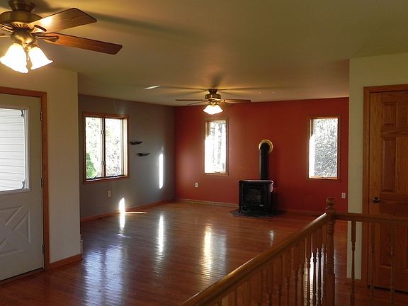 Charming country ranch on nearly 10 wooded private acres set atop the Beautiful Baraboo Bluffs. 2 bedrooms (easily convert to 3) 2 full baths. Hardwood floors in family/dining. Sun room has windows all around. Walk out to wrap around deck and enjoy an abundant view of wildlife and stunning sunsets. Finish space in lower level or add on. Efficient heat with additional wood burning heat source and soapstone LP stove in family room. 30x30 Wood burning heated workshop/2+ car garage. New roof and hot water heater 2014. Freshly painted. Mowed, wooded trails. Enjoy your own "little piece of heaven."