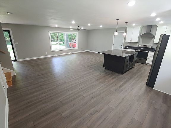 Rent to Own This house has been remodeled to allow for a nice open concept feel. It includes new windows, roof, garage doors, siding, furnace, floors, and new kitchen with granite counter tops and higher end appliances. The house sits on a large private 1.6 acre lot with mature trees including many large black walnuts. The outside is great for entertaining or sitting back and relaxing on the two new concrete patios or the large wood deck. There is a nice sized concrete driveway with offset parking for boats or RV's. Plenty of room for your cars and or toys with a three and a half car garage and a shed. One of the garages is finished and heated. If you need more garage there is plenty of room next to the offset parking. The security deposit will come off of the purchase price once you have purchased the property. I am asking $409,000 for the property. I will handle and costs for mechanical items that may arise for the home. I will also pay the property taxes. You will be responsible for lawn maintenance and snow removal.
