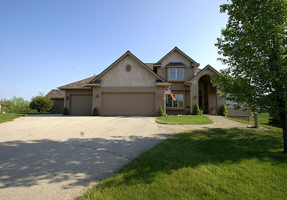 Your new home sits on a flat full acre lot overlooking Muskego. This 5 BR home has everything: Den/Office, 1st FLR Master BR Suite WIC, 3.5 BA, Finished Walk-Out Lower w/wet bar, Multi-purpose room and heated garage. Many updates within the last few years. New HVAC, roof, HWF, and Granite. A 2 story south facing wall of windows brightens the house. Everyone wants open concept this home has it. The large great room w/GFP, dining area, and kitchen with granite open to the huge patio w/water feature. Sit back and enjoy the views of your beautiful yard. 20k shed/play house. Must See!