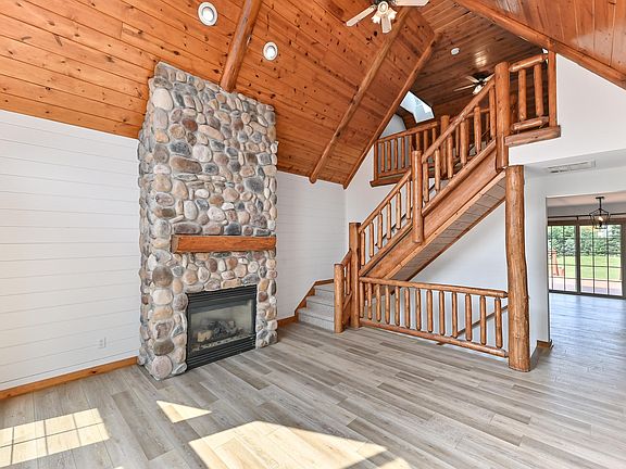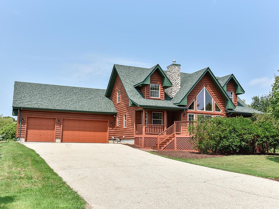 Wow! Stunning remodel of this Executive Log home. A talented designer put her finishing touches on this wonderful Wisconsin oasis. The beautifully designed kitchen and dining room overlook the amazing deck, pool and incredible landscape! Heated floors throughout the house and spacious 3 car plus garage will make those winter nights cozy and fun. Finished basement features a workout room, a beautiful office with built-ins and a Murphy bed, another bedroom, a large entertainment room and bathroom. Oh and of course the basement floor is heated! All new almost everything! It's like brand new. The outside features a multi level decks, a pool, a chicken coop, sand volleyball court, and huge front deck. Wildlife abounds. Sandhill cranes in the summer! Live that vacation lifestyle every day.
