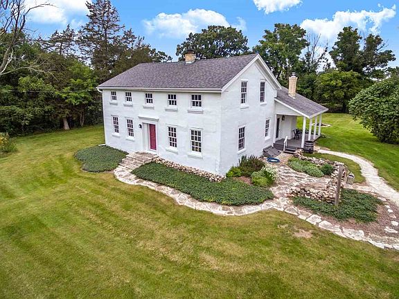Do you appreciate historic properties? This one of a kind circa 1840s 4 BR home on 3 acres has been painstakingly restored & updated. One look & you will see the love & pride put into every detail restoring this home to all its grace & grandeur! Enjoy the peaceful solitude as you walk through your own native prairie or relax on your back patio. 24x34 log garage for your vehicles and hobbies plus log potting shed. Many established perennial flower beds. Seller has extensive home history and will share with buyer. No closet in BR3
