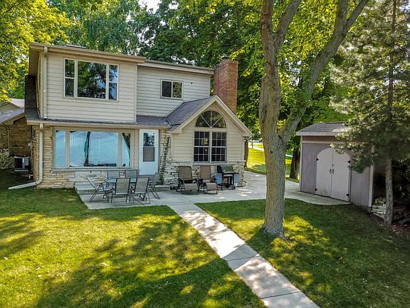 Come see the amazing lake views of Little Muskego! This 2 bedroom, 2 full bath home is sure to impress. Updated Kitchen with granite counters, newer cabinets, and appliances included. Dining Room features expansive window and gorgeous lake views. Living Room features natural fireplace and more lake views. Bedroom 2 on the main and updated full bath with tile shower and floor. Upstairs is the private Master Suite with expansive windows, skylight and private bath. Patio and deck area outside with 2 sheds. Great shoreline on 61' of frontage on Little Muskego lake. Pier included and boat and lifts are negotiable. All this plus a 1 year home warranty included! Looking for a lake home with a beautiful view? This is the one.