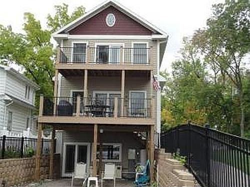 Custom Lake Home w gorgeous amenities amazing views from the open concept LR featuring stone gas fp,soaring ceilings & patio drs to private deck.Fabulous KT w BI ovens SS app,granite CT Fl.Bathrms are fully re-done w/full granite surrounds.MBR offers gas FP,WI Closet & lovely BA. Open staircase to upper level offers 3BR's,den & 2nd private deck.Walkout LL W/2nd full KIT,granite CT's,Huge FR,Another BR & Bathrm.Patio drs lead to heated salt water & sep patio area.Stunning Home.